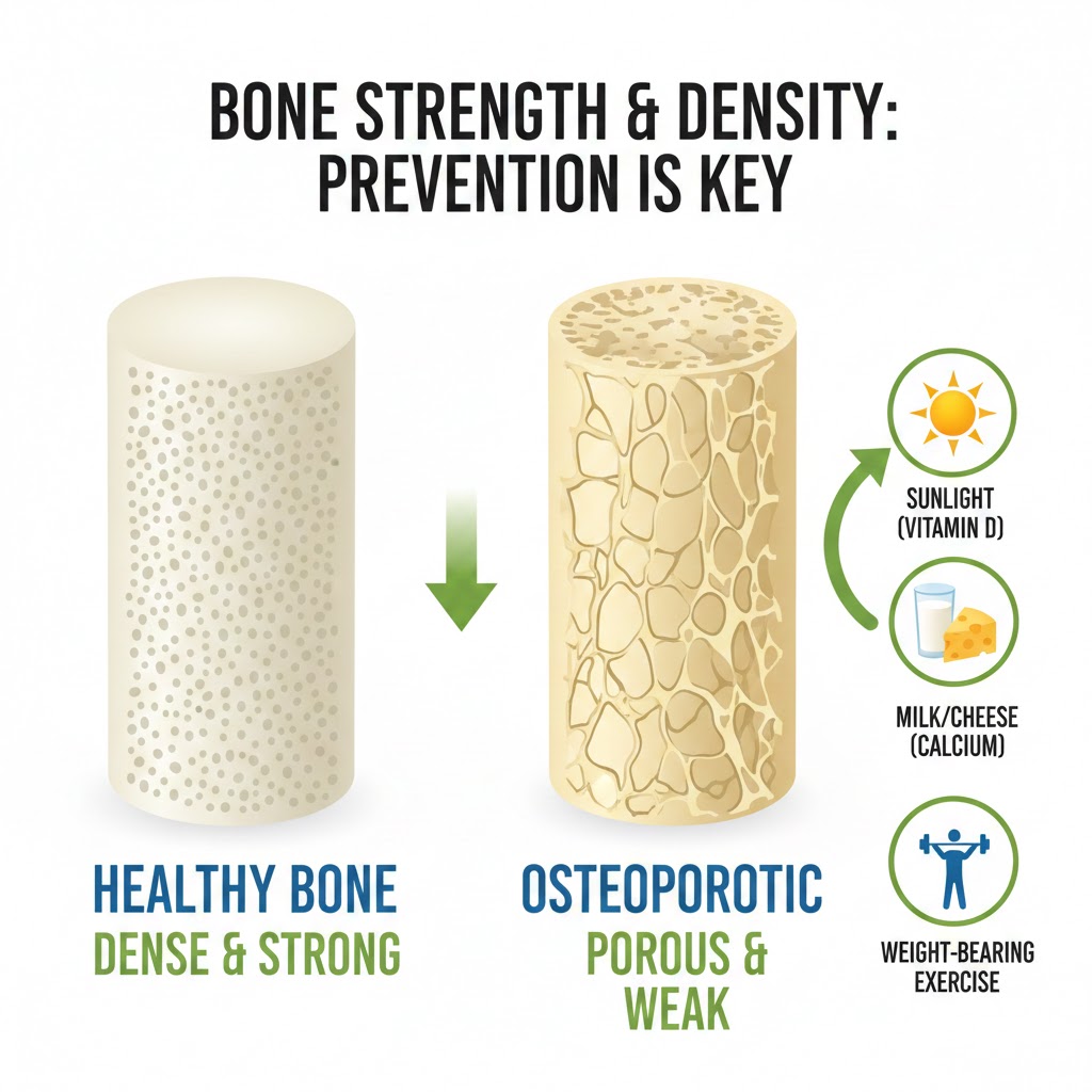 어머니께서 골절로 힘들어하시는 모습을 보면서, 뼈 건강은 미리미리 챙겨야 하는 **평생의 보험**이라는 것을 뼈저리게 느꼈습니다. '아직 젊으니까'라는 안일한 생각은 위험합니다. 30대까지 뼈에 저축하는 것이 중요하고, 이후에는 그 저축액을 지키는 것이 중요합니다. 오늘부터 당장 10분 햇볕을 쬐고, 한 컵의 우유를 마시는 작은 습관을 시작해 보세요. **튼튼한 뼈가 여러분의 활동적이고 독립적인 노년을 보장해 줄 것입니다!**