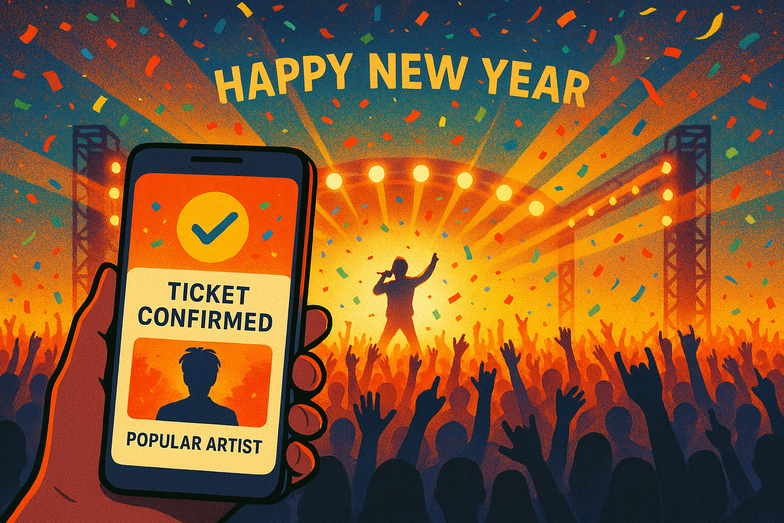 치열한 티켓팅 전쟁에서 승리하여 원하는 콘서트에서 최고의 연말을 보내시길 바랍니다. 뜨거운 함성과 함께 잊지 못할 추억을 만드시길 응원합니다!
