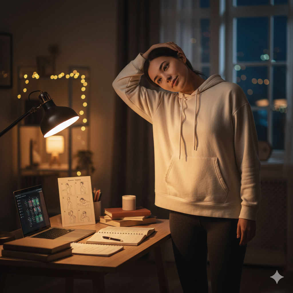 “50분 공부 + 10분 휴식”처럼 공부 리듬을 정해두었다면, 휴식 시간 중 5분만이라도 스트레칭을 넣어보세요. 나머지 5분은 화장실·간식·눈 휴식에 써도 충분합니다.