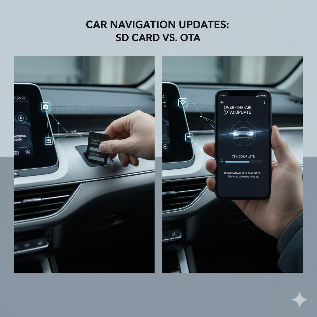 - **SD카드 재삽입:** 차량 시동을 켠 상태에서 기존 SD카드 슬롯에 업데이트 파일이 담긴 SD카드를 다시 삽입합니다. (USB 방식 차량은 USB 포트에 연결)